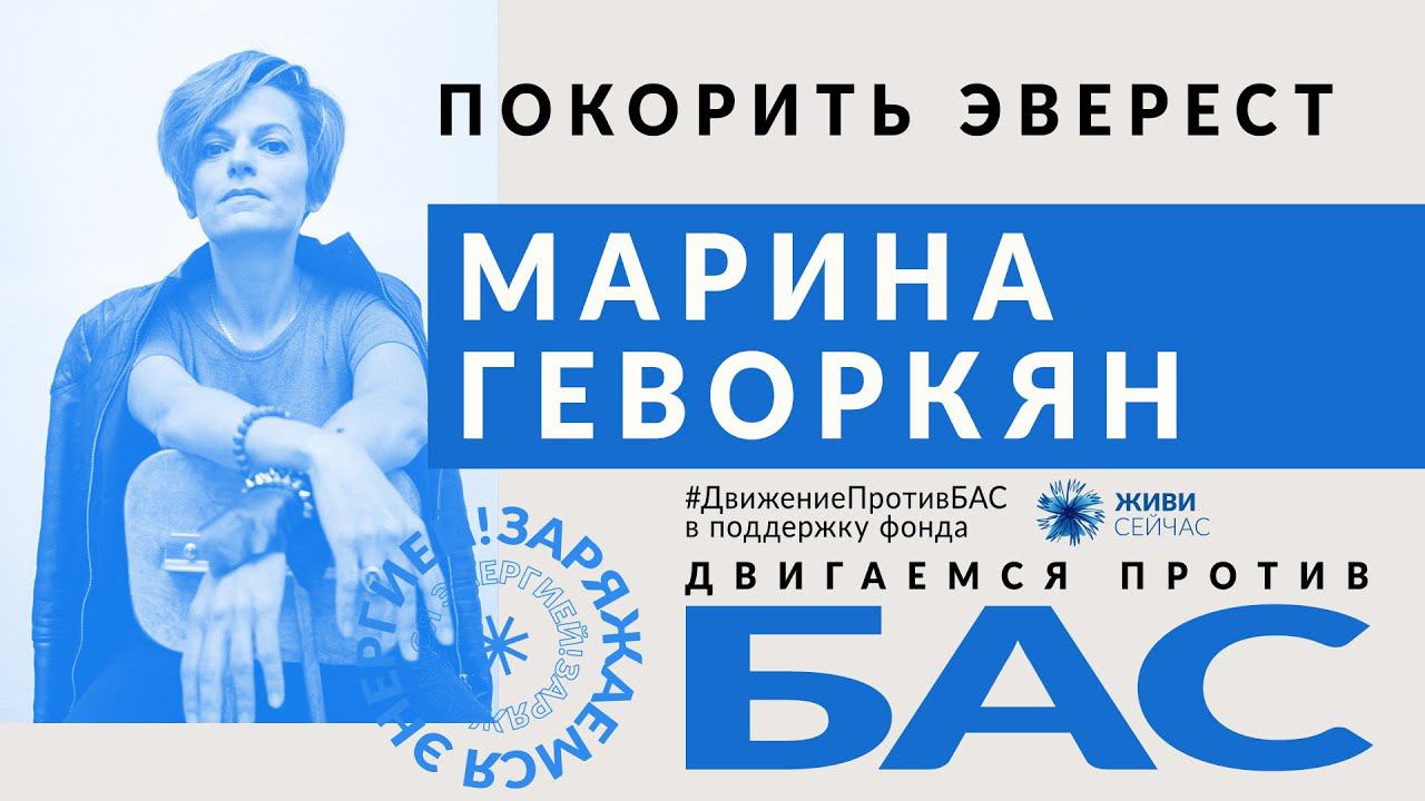 #ДвижениеПротивБАС #ЖивиСейчас #МаринаГеворкян Генеральный директор проекта Сноб.ру о покорении Эвереста. Сделать пожертвование в фонд «Живи сейчас» - https://alsfund.ru/campaign/pomoch-fondu/ 19 июня, в канун Международного дня борьбы с БАС, прошел 10-часовой онлайн-марафон в поддержку благотворительного фонда «Живи сейчас». Артисты, спортсмены, блогеры и известные люди объединились, чтобы собрать средства на работу единственного фонда, который помогает людям с БАС (болезнью Стивена Хокинга) – тем, кого болезнь лишает возможности двигаться.