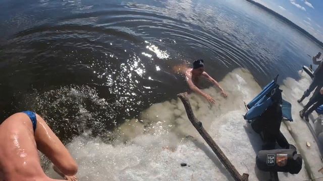 Поставили палатку баню на льдине!