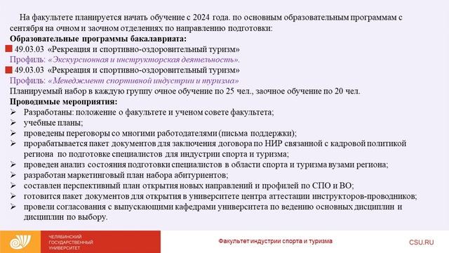 Факультет индустрии спорта и туризма ЧелГУ