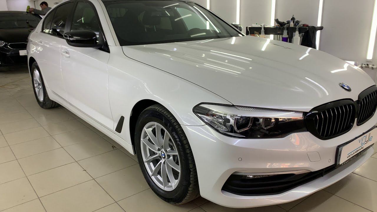Оклеили крышу с плавником, решетку радиатора гибридной чёрной плёнкой, тонировка стекол - BMW 520D