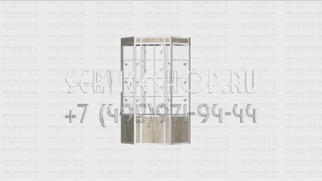 Алюминиевая витрина со скошенными углами и с крутящимися полками