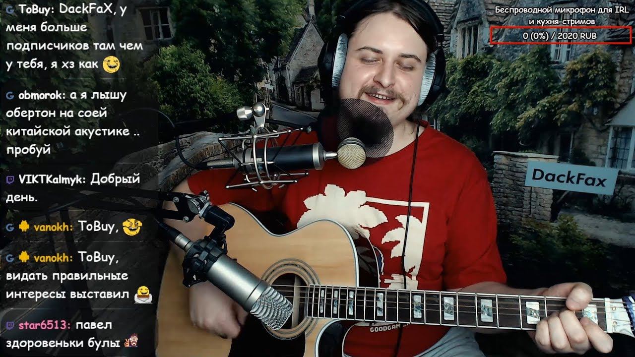 Мат и оскорбления - не рекомендуется. Финансовая поддержка: https://www.donationalerts.ru/r/dackfax 25-26 июля выступаю на музыкальной сцене «Стрим-фест», г.Москва, Технопарк «Сколково» Приходи и поддержи любимого стримлира: http://streamfest.ru/speaker/dackfax Заказы: https://docs.google.com/document/d/1bV_nYYh2VZrrqTcAIlxPZ1BpbJ8128kf1hGR-JMOGQs/edit?usp=sharing Если тормозит, буферизация илЬ ещё чего странное происходит с трансляцией, сообщите о проблеме в ЛС и попробуйте перейти на: Твич, GG, Вконтакте. Твич: https://www.twitch.tv/dackfax GG: https://www.goodgame.ru/channel/DackFaX Вконтакте: https://www.vk.com/dackfax Инстаграм: https://www.instagram.com/dackfax Дискорд: https://discord.gg/KWkEVWS Сбербанк МИР: 2202 2009 1094 6522 QIWI Кошелёк: +79529705023 Яндекс Деньги: 410016891810710 Накормить: https://send.wtf/dackfax QIWI, Яндекс, Сбербанк и Накормить: анонимны и без оповещения на экране, но плюс в том что для стримера это без комиссии. Поддержка с оповещением на экране: 1: https://donatepay.ru/d/dackfax 2: https://streamlabs.com/dackfax 3: https://goodgame.ru/channel/dackfax/support Во время исполнения песни все оповещения стоят на паузе. Ютуб: https://www.youtube.com/user/alphapavel Скачать записи трансляций: https://yadi.sk/a/WBHVNDQM3Zp7bd Оборудование и ПО: https://docs.google.com/document/d/1O3V3IFv8kJA-3pDFVt2DAeljsKuv11ul8vCxw1sneGg/edit?usp=sharing Нина: https://www.youtube.com/channel/UCuTuebgg92JIByp2NCfg9JA Евгений: https://vk.com/altman_e Катя: https://www.youtube.com/channel/UCtQPxkyxHirRF7jKGn09vdg Антон: https://www.youtube.com/channel/UCuWqPqgPlPvO4RmtjsHpGrQ #живаямузыка #песниподгитару #живойзвук