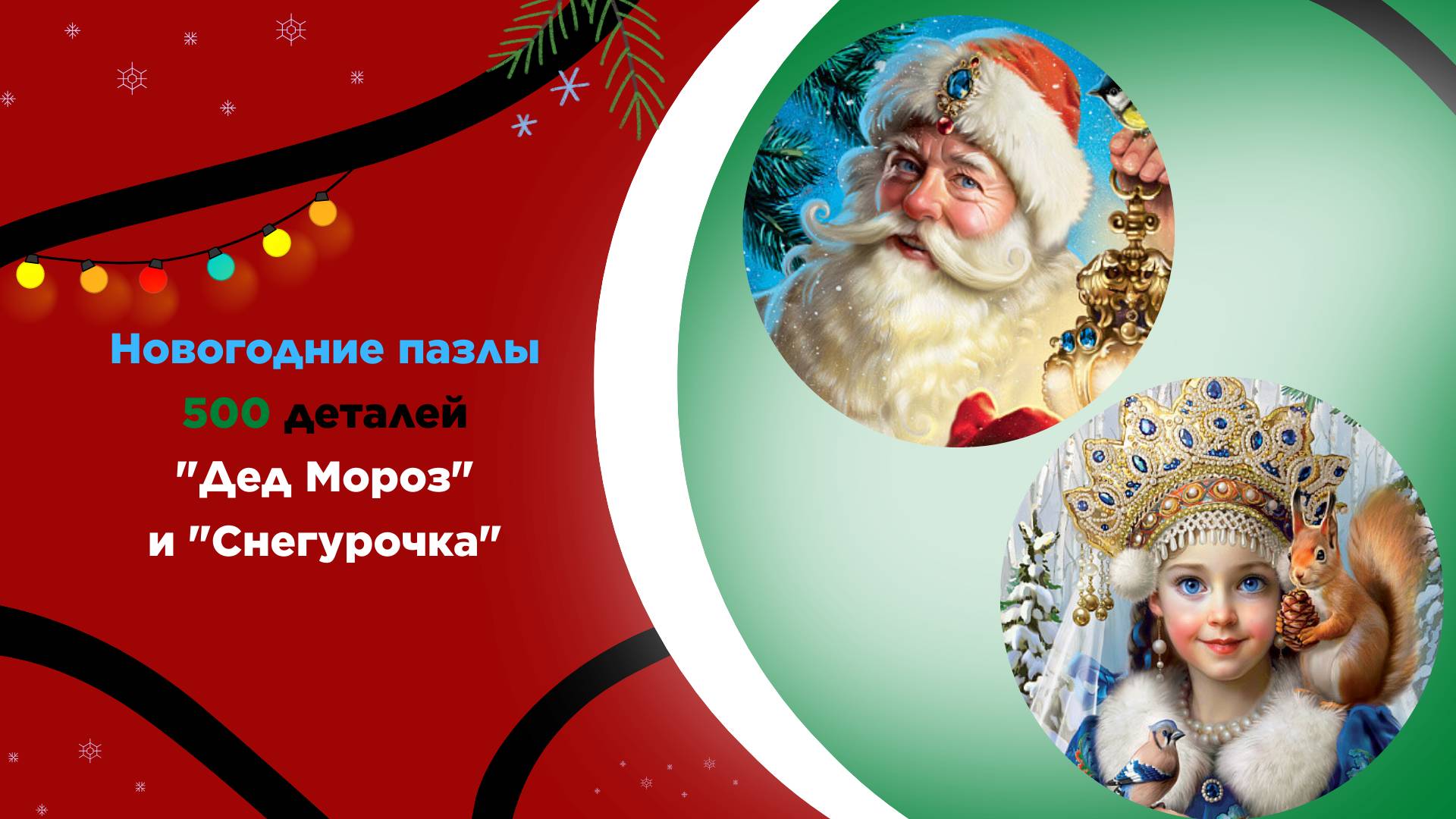 Пазлы "Снегурочка" и "Дед Мороз" для взрослых и детей с 7лет. Новый год 2025, подарок, елка, снег