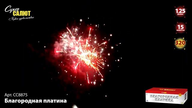 Батарея салютов Благородная платина (320/1,2) СС8875 https://spb-salut.ru/products/blagorodnaya-platina-320-1-2 Количество залпов/калибр: 320/1,2. Время работы до 245 сек. Высота подъема до 40 м. Эффекты: красные волны с белым мерцанием; пурпурные волны с изумрудным мерцанием; парчовые короны с рубиновым мерцанием; красно-зеленые пионы, золотые хризантемы и синие жемчужины; красно-зеленые георгины с белым мерцанием; серебряные волны в сопровождении трещащего облака; фиолетовые георгины и 1000 изумрудных мерцающих звезд; золотые волны в сопровождении золотых трещащих искр и серебряного мерцания; по бокам синие жемчужные букеты, в центре красные мерцающие ивы и россыпь синего жемчуга; на нижнем уровне красно-серебристый мерцающий букет, на верхнем - золотые трещащие ивы и 1000 изумрудных звезд; красно-синие георгины с ослепительным изумрудным мерцанием; цветущая ива с фиолетовым сиянием; на нижнем уровне красно-серебристый мерцающий букет, на верхнем - золотые цветущие ивы с красным сиянием; на нижнем уровне красно-серебристый мерцающий букет и 1000 синих жемчужин, на верхнем - золотые цветущие ивы с зеленым сиянием; на нижнем уровне золотые трещащие шлейфы с красными жемчужинами и белым мерцанием, на верхнем - золотые цветущие ивы и 1000 синих жемчужин. Фасовка: 1/1. SPB SALUT - пиротехническая компания в Санкт-Петербурге. Основные направления деятельности: 1) Розничная торговля пиротехникой (офлайн магазины, интернет-магазин spb-salut.ru); 2) Организация и проведение профессиональных фейерверков; 3) Оптовая торговля пиротехникой по всей России. Адреса магазинов: 1) г. Санкт-Петербург, ул. Тележная, д. 15, лит. Б (вход с ул. Кременчугская), м. Площадь Восстания. Ежедневно с 10:00 до 22:00 2) г. Санкт-Петербург, пр. Полюстровский, д. 28Б, м. Площадь Ленина. Ежедневно с 10:00 до 22:00 Благодаря большому опыту, наши специалисты с легкостью создадут для Вас уникальное фейерверк шоу, которое сделает любой Ваш праздник незабываемым, будь то день рождение, свадьба, корпоратив или фейерверк городского масштаба! Почта: info@spb-salut.ru Сайт: https://spb-salut.ru Тел.: +7(812)242-82-24; +7(952)287-80-85.