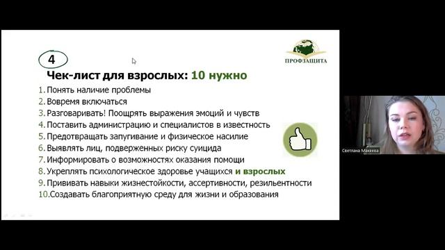 Суицидальное поведение учащихся: формы, проявления, предпосылки Детский буллинг: виды, компоненты, последствия, риск суицидального поведения Признаки склонности учащегося к суицидальному поведению Чек-лист для взрослых: 10 нужно и 5 нельзя Профилактика суицидов у детей в системе образования: первичная, вторичная, третичная Записаться на программу "Способы предотвращения буллинга и мобинга в образовательной среде" - https://profschool.online/bulling Приобрести сертификат участника вебинара + бонусы в виде полезных чек-листов" - https://clck.ru/33nL4c Презентация спикера - https://disk.yandex.ru/i/GCt_MR4SKTNcCg
