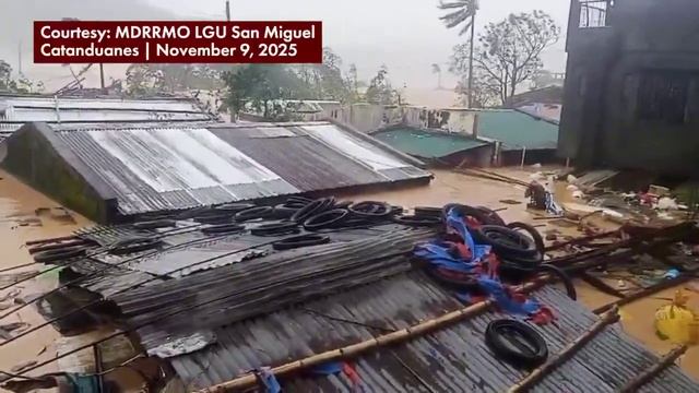Наводнение вызванное тайфуном Фунг-Вонг в Сан-Мигеле (Катандуанес, Филиппины, 9.11.2025).