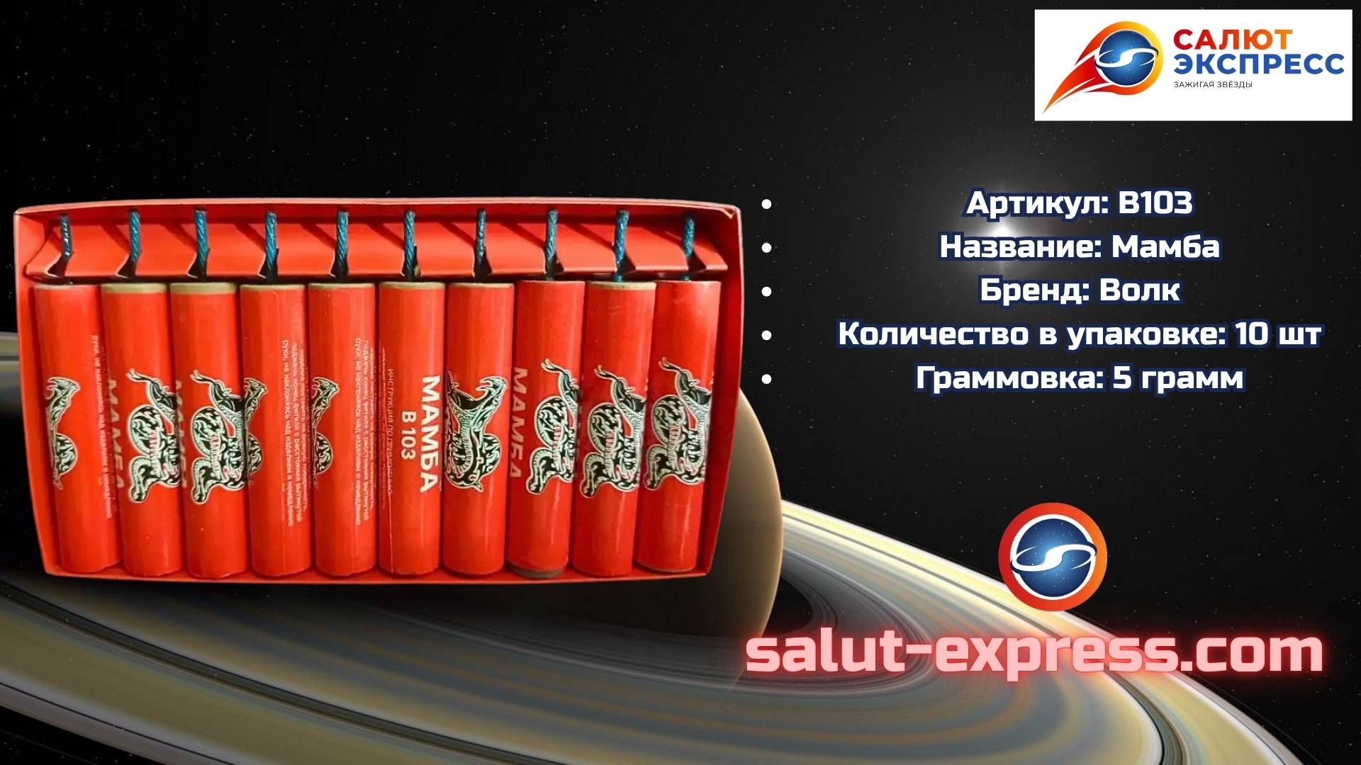 🐍 Петарды «В103 Mamba» от бренда ТМ Волк. Пачка: 10 шт., мощный хлопок и яркие эмоции. 🛒 https://salut-express.com/product/mamba 📲 Мы в соцсетях: VK: https://vk.com/fireworks_shop Instagram: https://instagram.com/salutexpress Telegram чат: https://t.me/Salutexpress Telegram канал: https://t.me/Salutexpres 📞 +375 (25) 614-87-00 | +7 (950) 704-90-55 #пиратка #mamba #в103 #tmволк #петарды #фейерверки #salutexpress
