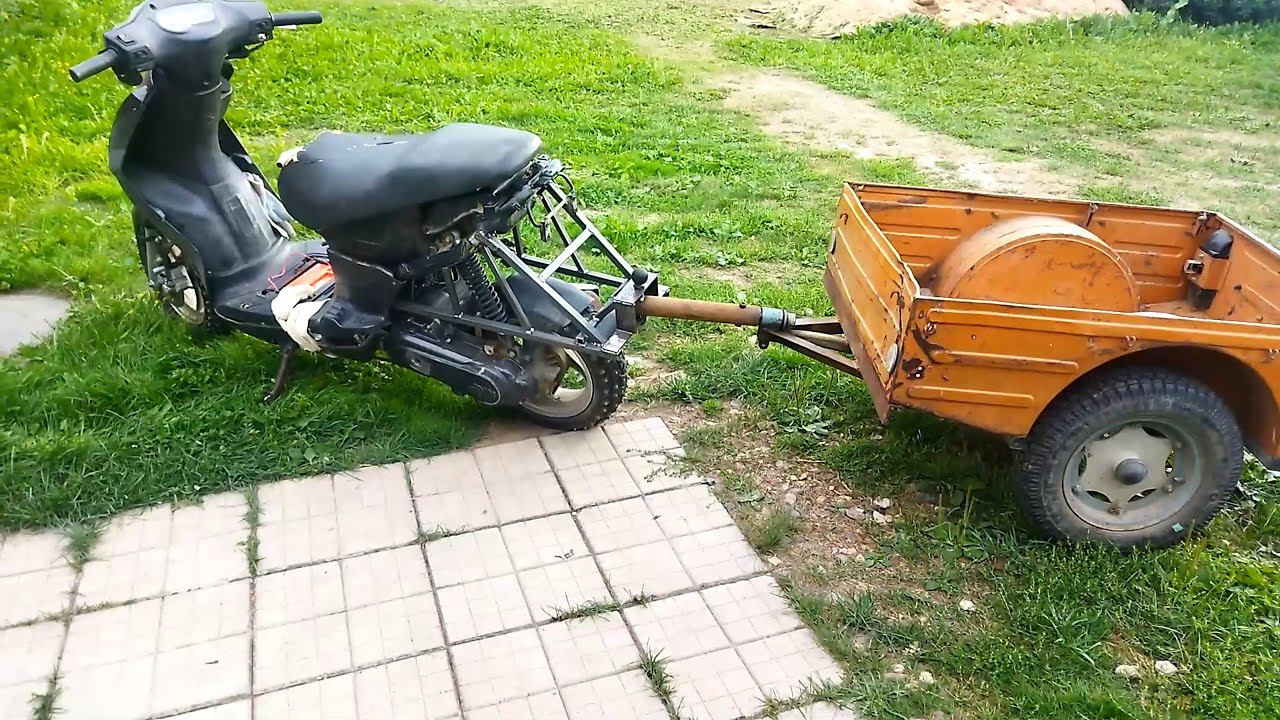 Скутер + советская телега ЕНОТ :) Как сделать крепление телеги на скутер? Мототелега в деле...