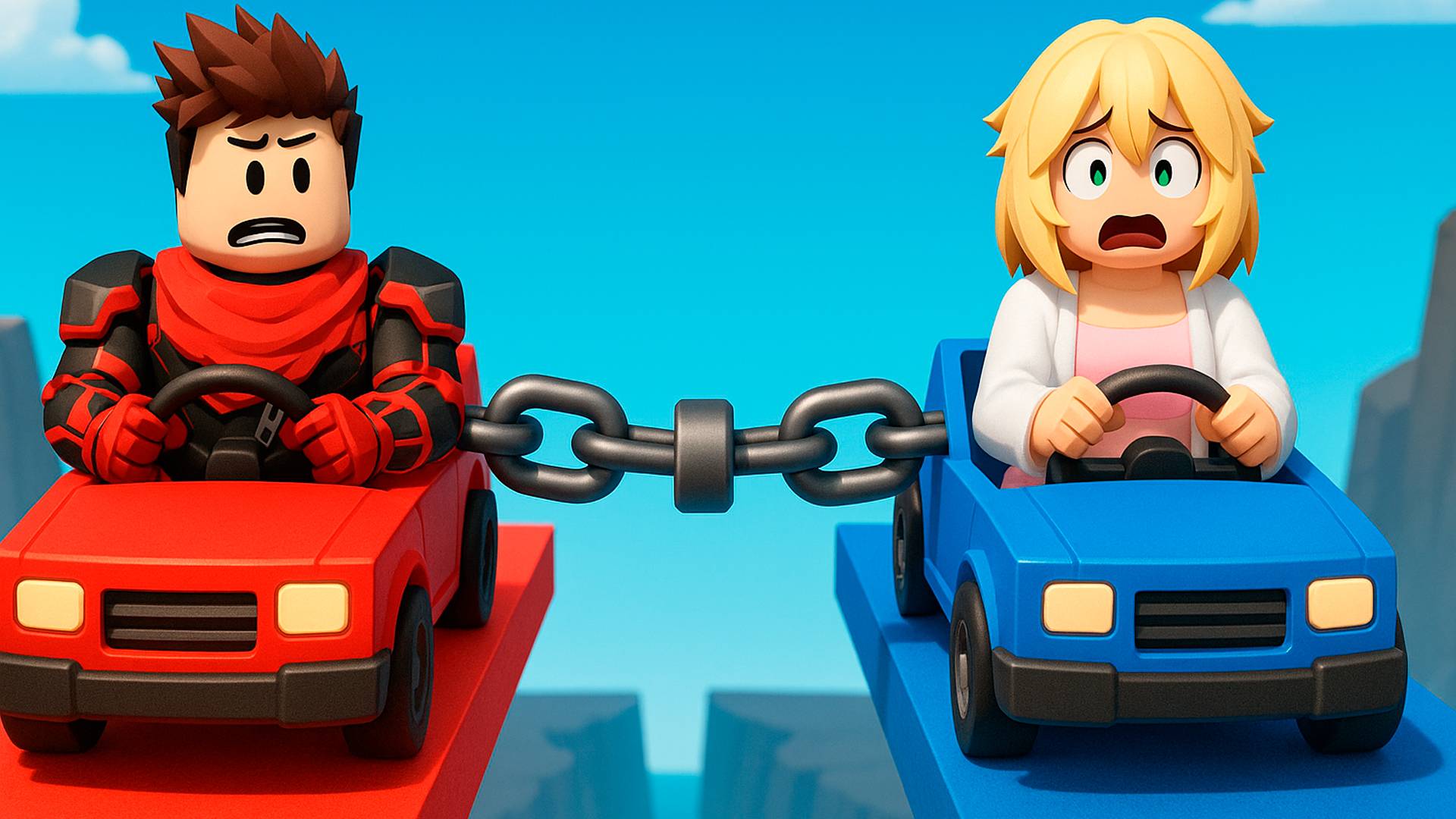Машинки на цепях ! Испытания для двоих в Chained Cars 2 Player Obby Роблокс !