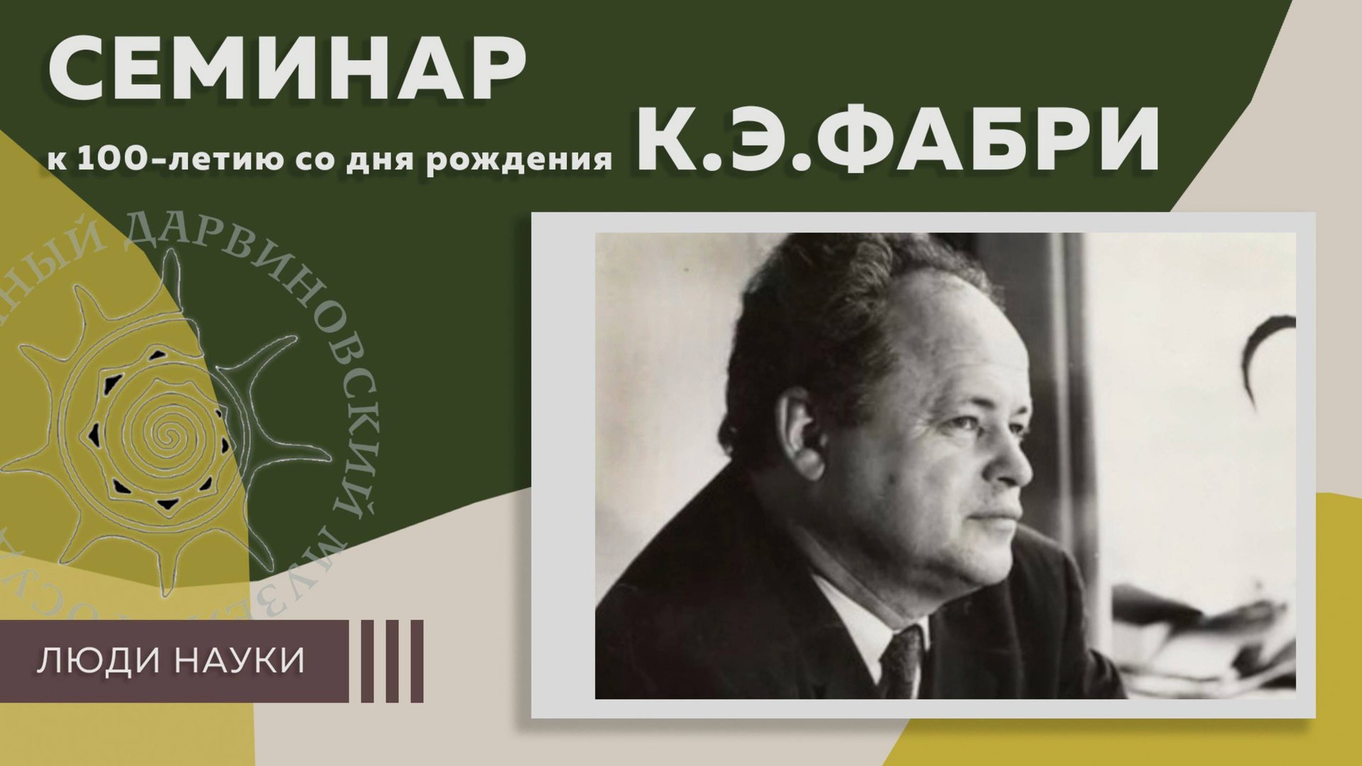 Семинар, приуроченный к 100-летию со дня рождения известного этолога, одного из основоположников отечественной зоопсихологии Курта Эрнестовича Фабри (1923-1990). С приветственным словом к гостям обратилась директор Дарвиновского музея А.И. Клюкина. Она рассказала о документах из архива ГДМ, позволяющих проследить историю сотрудничества К.Э. Фабри и соосновательницы Дарвиновского музея Н.Н. Ладыгиной-Котс. На семинаре прозвучали доклады: «К.Э. Фабри как профессор МГУ» Б. С. Братусь, доктор психологических наук, член-корреспондент РАО, профессор факультета психологии МГУ, декан факультета психологии Российского православного университета св. Иоанна Богослова, А. З. Шапиро, кандидат психологических наук, доцент, ведущий научный сотрудник Института изучения детства, семьи и воспитания РАО, директор-организатор Института изучения личностного опыта и позитивной психолингвистики «Если вы хотите познать тайны полей, лесов и океанов»: лаборатория зоопсихологии на рубеже веков» Е. Ю. Федорович, кандидат психологических наук, научный сотрудник Академии Московского зоопарка «К.Э.Фабри, как основоположник экологического образования дошкольников» С. Н. Николаева, доктор педагогических наук, главный научный сотрудник Института изучения детства, семьи и воспитания Российской академии образования «О научно-мировоззренческом значении зоопсихологических исследований К. Э. Фабри» Елена Николаевна Махмутова, кандидат психологических наук, доцент кафедры педагогики и психологии МГИМО МИД России «Эволюционные истоки самосознания: чем психика человека качественно отличается от психики других животных?» И. А. Хватов, кандидат психологических наук, заведующий научно-образовательным центром Биопсихологических исследований Московского института психоанализа «Исследования когнитивных способностей серых ворон» А. А. Смирнова, кандидат биологических наук, ведущий научный сотрудник лаборатории физиологии и генетики поведения кафедры высшей нервной деятельности Биологического ф-та МГУ им. М.В. Ломоносова