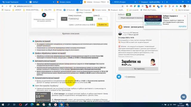 Без вложений! Sellecter БОНУС 50$, за реф 1$ Проверяю на Вывод! ПЛАТИТ! много бонусов!
