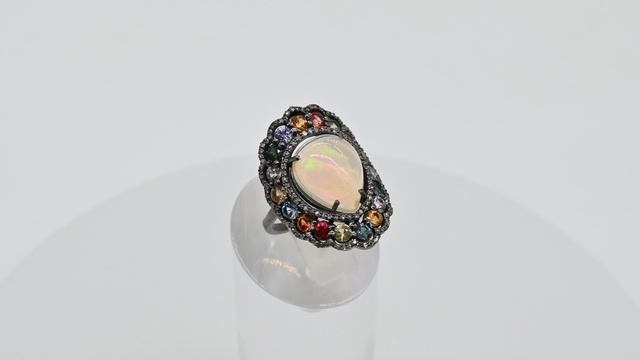 Кольцо С925 с опалом, сапфиром и алмазами, размер 17,5, 4,7г Арт: с111013-17,5