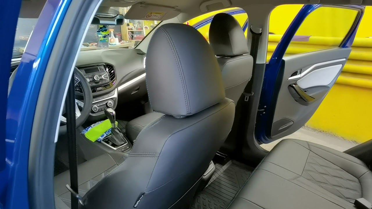 Чехлы для Lada Vesta с ромбами и синей строчкой