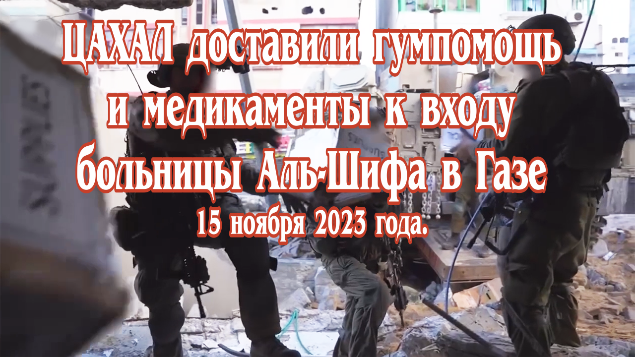 ЦАХАЛ доставили гумпомощь и медикаменты к входу больницы Аль-Шифа в секторе Газа. 15.11.2023.