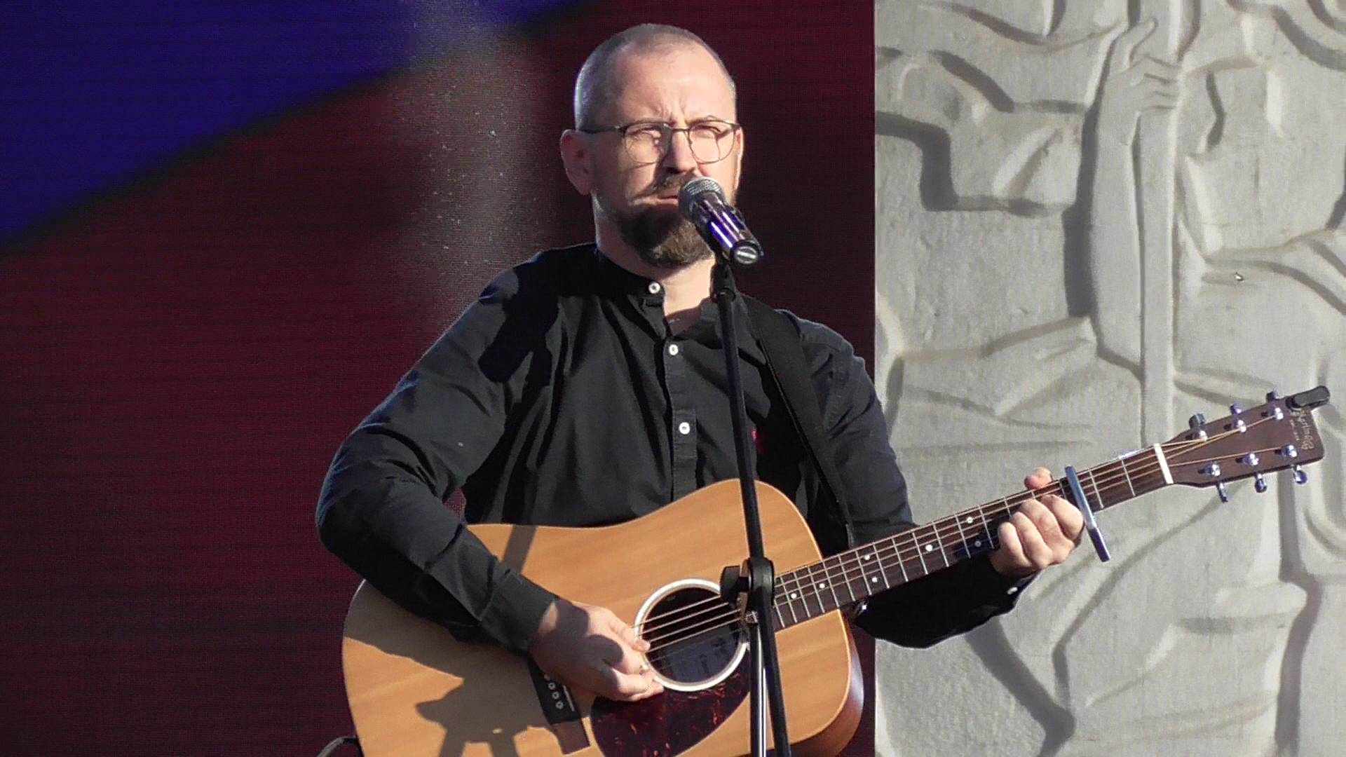 Певец с гитарой поёт песню