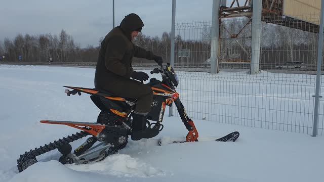 электро мотоцикл на гусенице, пробный выезд