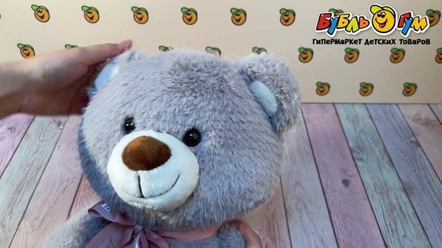317249 Игрушка мягкая Lanson Toys Медвежонок Лука с розовым бантом серый 30см