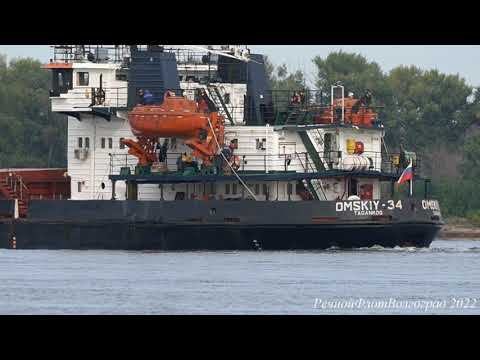 Теплоход Омский-34 идет вверх по Волге