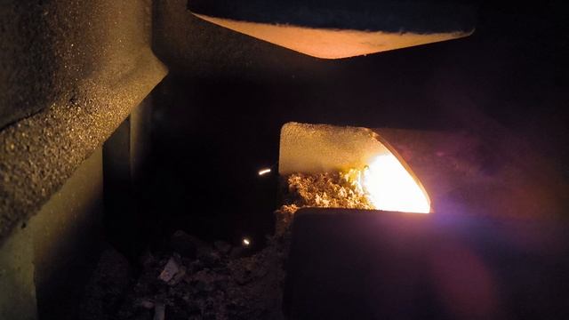 2025.12.06 Горение в котле Zota Forte 15. Параметры подачи топлива Шнек Нагрев Работа 8 с Перерыв 85с Поддержка Работа 7с Перерыв 14мин Вентилятор Поддержка Работа 9с Перерыв 10мин Мощность 10%