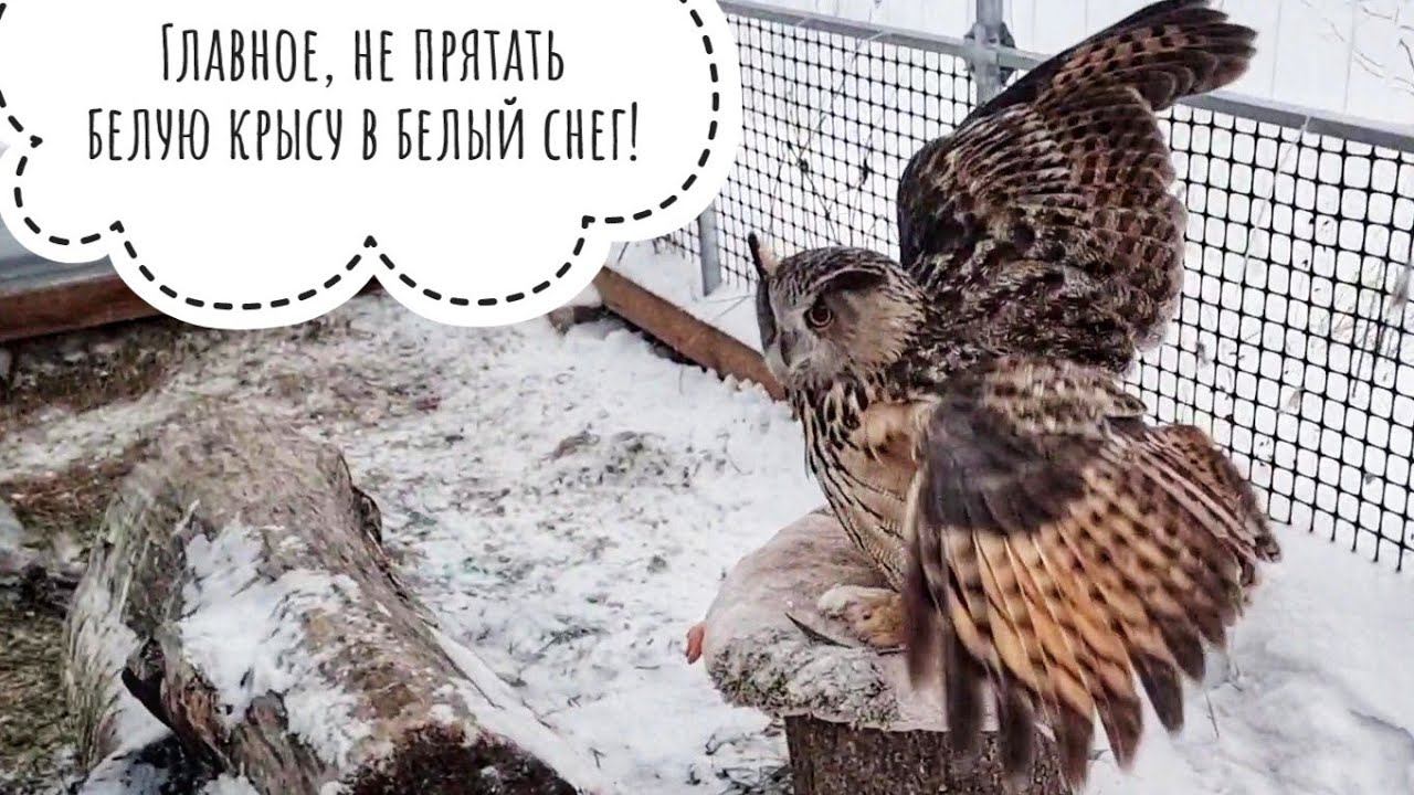 Погода не УГУ! Сова Ёль приняла завтрак. Новенькие совы не понимают, как надо питаться, всё мёрзнет