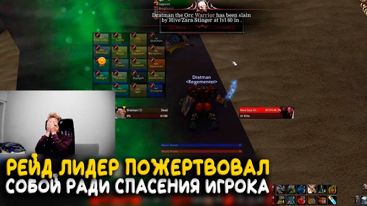 В World of Warcraft Classic есть настоящие герои, которые ценой жизни своих персонажей, могут помочь своим товарищам и вытащить их из сложной заварушки. Так недавно, на сервере Hardcore WoW Classic, рейд проходящий подземелье Анкираж в двадцать чел, столкнулись с выбором, остаться в безопасности или попытаться спасти сопартийца попавшего в безвыходную ситуацию