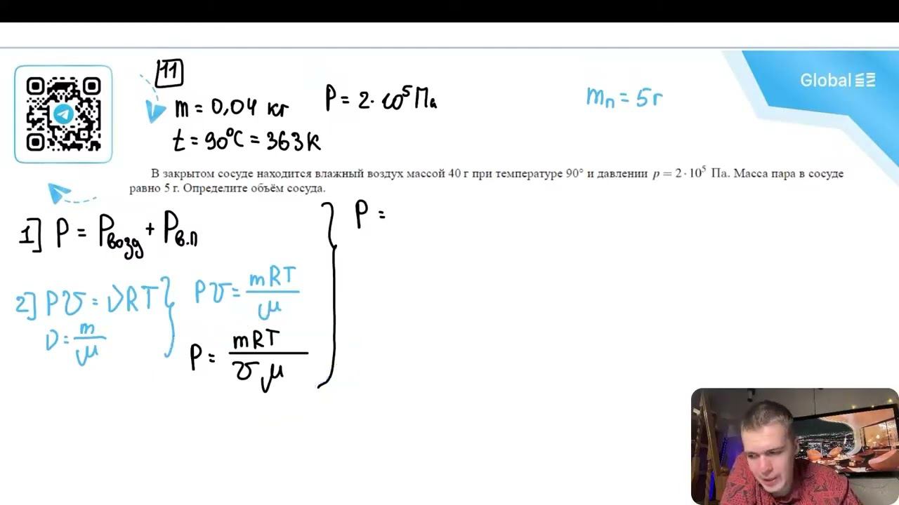 В закрытом сосуде находится влажный воздух массой 40 г при температуре 90°C и давлении p = 2 - №