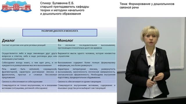 Булавкина Е.Б. Видео-лекция «Формирование у дошкольников связной речи»