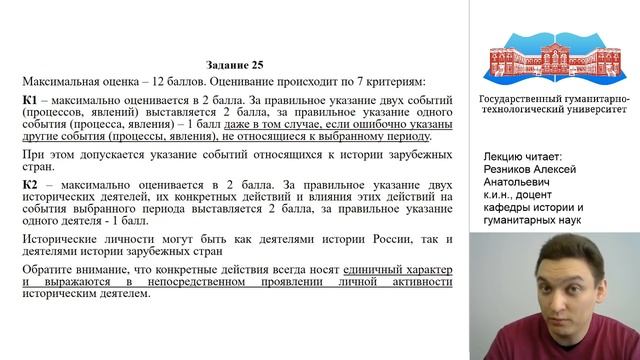 Резников А.А. Видео-лекция. «Особенности выполнения заданий с развернутым ответом ЕГЭ по истории»