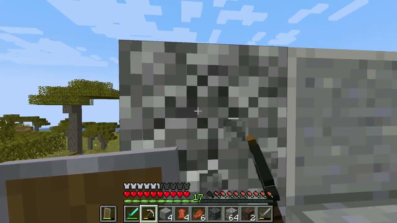 добыча алмазов ,нахождение деревни и ресурсов, фарм коров и слендеренов постройка дома.