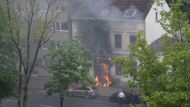 Германия. Пожар в ресторане со спасением человека.
