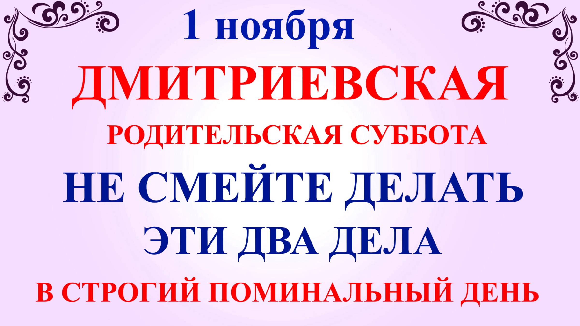 1 ноября Родительская Суббота в 2025 году, Дмитриевская Родительская Суббота, поминальный день. Сегодня отмечается народный праздник Иванов День! В народе праздник называют Проводы Осени или Встреча зимы. По церковному календарю 1 ноября отмечают перенесение мощей преподобного Иоанна Рыльского. А также чтут память Священномученика Садока. В этом видео вы узнаете, что можно и нельзя делать в поминальный день 1 ноября Дмитриевская Суббота, какую молитву читать 1 ноября в родительский день, народные традиции и приметы на Дмитриевскую Субботу 1 ноября, приметы погоды на Родительскую Субботу, 1 ноября поминальный день Родительская Суббота. В 2025 году 1 ноября Дмитриевская Суббота проходит в официальный выходной день! Церковный Праздник является переходящим! И свершается в субботу перед днем памяти святого великомученика Димитрия Солунского. Если Вам понравилось народный праздник дмитриевская суббота, какой сегодня праздник , о чем молятся в родительскую субботу можно отправить по Viber, whats app, а также поделиться в социальных сетях vkontakt, odnoklassnik! Дмитриевская Родительская Суббота 1 ноября ссылка на видео на нашем Ютуб канале: https://youtu.be/DPyChEyMhxE ✅ Подпишитесь на Народные Праздники в Телеграм https://t.me/nprazdniku Благодарю за подписку! Подписывайтесь на канал прямо сейчас!❤️️❤️️❤️️ОБЯЗАТЕЛЬНО нажмите на колокольчик 🔔 (чтобы получать полезную информацию первым)