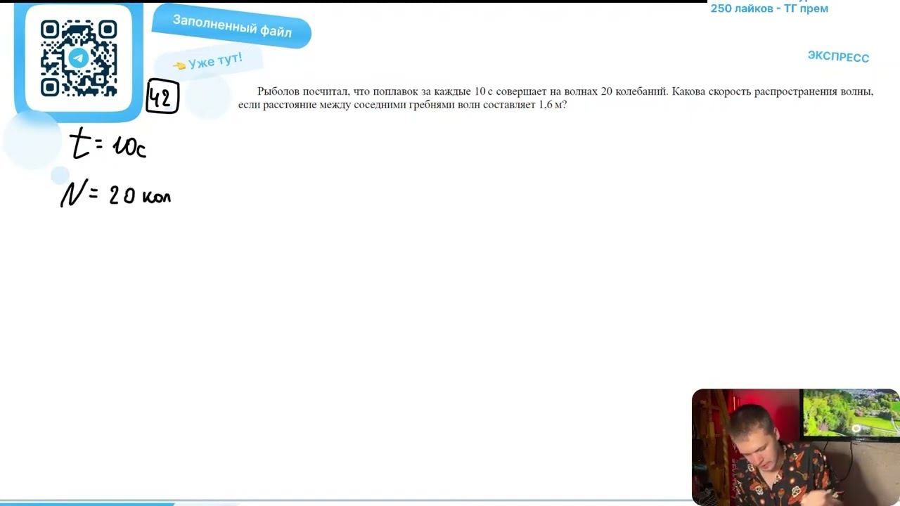 Рыболов посчитал, что поплавок за каждые 10 с совершает на волнах 20 колебаний. Какова скорость - №