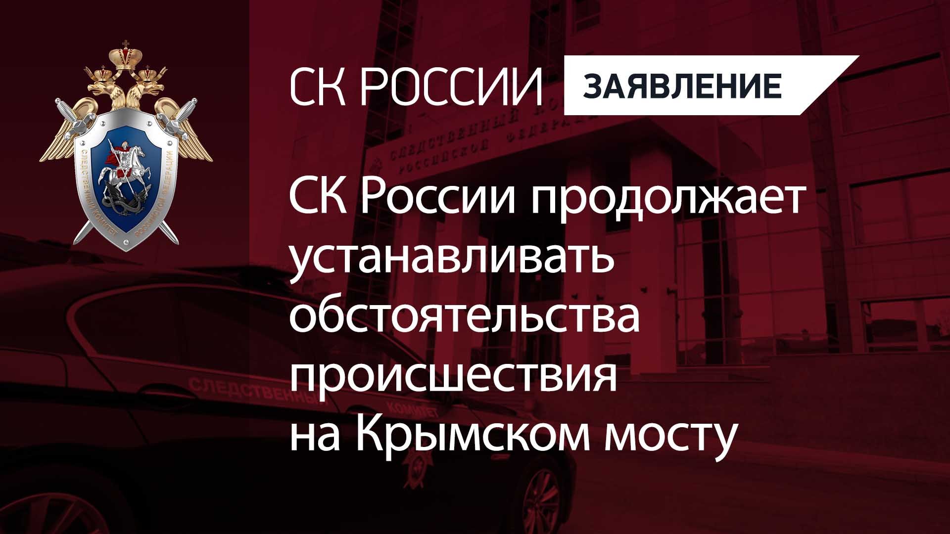 Следственный комитет России продолжает устанавливать обстоятельства происшествия на Крымском мосту