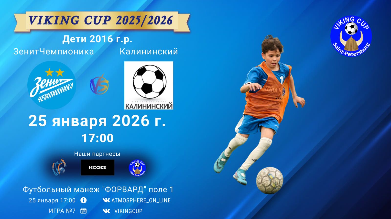 VIKING CUP среди команд 2016 г.р. (U10), Поле 1 25 января 2026 САНКТ-ПЕТЕРБУРГ, ФЦ "Форвард" ЗенитЧемпионика-Калининский/VIKING CUP, Игра №7, 25-01-2026 17:00