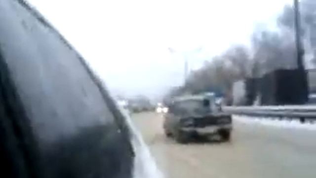 Шоссе энтузиастов в город, после поста ДПС у объездного шоссе. Снег и ледяной дождь, впереди мост на который фуры не могут заехать. Договорившись, они полностью перекрывают дорогу, все ряды. За первым рядом формируется второй, по окончанию первый ряд уезжает брать мост с разбега, и так по циклу. Движение перекрыто полностью, движемся раз в 5-15 минут, пока они рокируются по оставленной какой нибудь кишке, потом они ее перекрывают. На видео я уже проехал ряды и выехал на пустую дорогу (ряды тут: http://youtu.be/xrMKnLfUTso ) На горьковском ш. пробка более 20км, г.Балашиха парализован полностью, стоит абсолютно. Электричка утром последняя в 8:30, следующая только в 13 часов была, из города выбраться было невозможно. Ни одного мента на посту нет, все попрятались, сделать с ними ничего не хотят и не могут. Я как-то раньше с уважением относился к дальнобоям, но это уже за гранью.