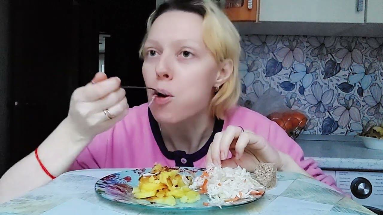 Мукбанг Жареная картошка и квашеная капуста