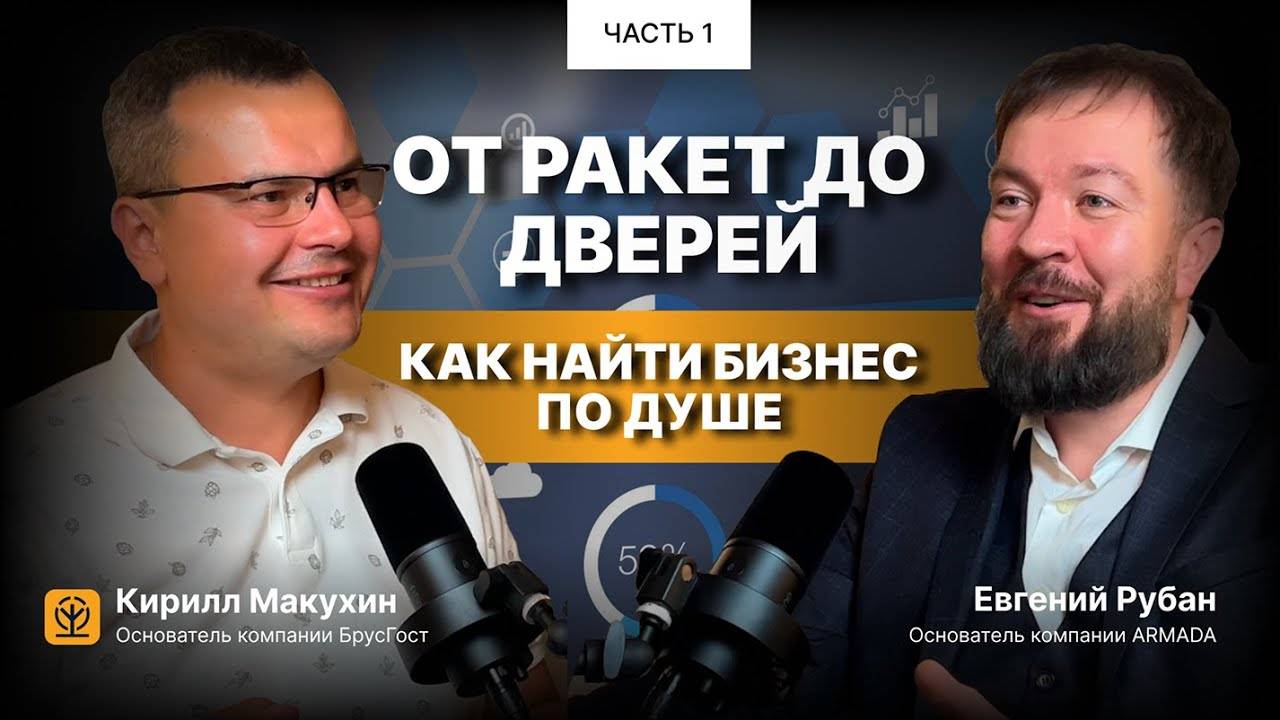 Часть Первая Гость сегодняшнего выпуска — Евгений Рубан, признанный эксперт с более чем 15-летним опытом в области качества серийного производства, инженерных и бизнес-технологий. Основатель и руководитель компании «Двери Армада», практикующий бизнес-трекер и специалист по управлению личными финансами. Евгений делится опытными знаниями и инструментами для построения успешного и системного бизнеса. Подробно о темах видео и таймкодах в конце описания - листай вниз 👇 ◀ ОБО МНЕ ▶ Меня зовут Кирилл Макухин Я предприниматель с 20-летним опытом, основатель строительной компании БрусГост, автор книг о Бизнесе, Трансформации и Личностном росте. Так же в моем арсенале опыт в построении консалтинговой компании в Москве, транспортной компании в Москве, Экофермы в Переславль-Залесском Создал собственную ERP-систему для бизнеса, построил три дома и нашёл свой путь в загородной жизни. На этом канале я делюсь: как построить системный строительный бизнес, как решиться на переезд за город и не разочароваться, как распаковать себя и создать дом, который совпадает с тобой. Если ты предприниматель и стремишься к системному бизнесу - пиши мне в телегу, я с удовольствием проконсультирую 👉 https://t.me/KirillMakuhin ◀ МОИ КАНАЛЫ ▶ Телеграм "Дом. Свобода. Бизнес система": https://t.me/Kirill_Makuhin Сайт: https://kirillmakuhin.ru/ VK: https://vk.com/kirill.makuhin ◀ МОИ КНИГИ ▶ Миллионы в загородном строительстве - https://kirillmakuhin.ru/book_millions Решиться - https://kirillmakuhin.ru/book_reshitsya 📚 Также, мои книги на площадках: ozon, wildberries, Ridero, ЛитРес, МТС Строки в поиске набери - Кирилл Макухин ◀ МЫ ИДЕМ В НОГУ СО ВРЕМЕНЕМ ▶ Моя компания БрусГост строит загородные дома из бруса, газобетона и по каркасной технологии с 2008 года. Надёжно, профессионально, под ключ. 700 + строений из дерева и камня Если вы в поиске технологии строительства будущего дома - предлагаем воспользоваться моей разработкой нейро-калькулятор - Точность — 87%. Без звонков и ожидания! PDF с результатом сразу на твоей почте! 👉 https://clck.ru/3P9vhU Сайт компании: https://brusgost.ru/?utm_source=km Telegram: https://t.me/brusgost Телефон: +7-925-707-12-82 ◀ ЧЕМ ЕЩЕ МОГУ БЫТЬ ПОЛЕЗЕН ▶ Помогаю семьям и предпринимателям строить не просто загородные дома, а пространства для жизни Запишись на распаковку - https://t.me/KirillMakuhin В этом выпуске: • как инженер-ракетчик стал экспертом в дверном бизнесе • какие уроки военной службы помогли выстроить системный и эффективный бизнес • миллионные инвестиции в образование • уникальная система подбора дверей — секрет успеха на рынке Смотрите данный выпуск до конца — это живая и вдохновляющая история развития бизнеса, наполненная практическим опытом, который поможет вам сосредоточиться на ключевых бизнес-показателях и вывести вашу компанию на новый уровень эффективности. Таймкоды: 00:00:00 — Введение 00:00:47 — Знакомство с гостем 00:01:10 — Как инженер ракетчик стал экспертом по дверям 00:02:45 — 15 лет – 15 бизнесов 00:06:04 — Военная машина, которая научила выстраивать системность 00:09:40 — Переломный момент перехода от службы в армии в бизнес 00:16:10 — Ключевые моменты 15 бизнесов 00:21:44 — В какой момент приходила идея менять бизнес 00:26:52 — Почему дверной бизнес 00:33:05 — Уникальная система в подборе дверей 00:37:02 — Инвестиции в образование 00:44:22 — Показатели бизнес системы 00:48:59 — Основные показатели бизнес системы по дверям #подкаст #путькуспеху #бизнес #масштабирование #строительство #деньги #психоло