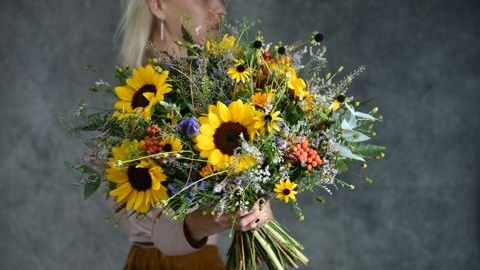 Сборка полевого раскидистого букета с подсолухами