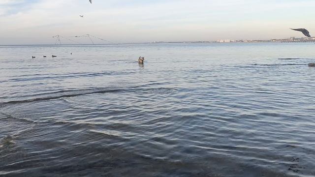 Веселый пес на центральном пляже .Анапа 29.11.2025