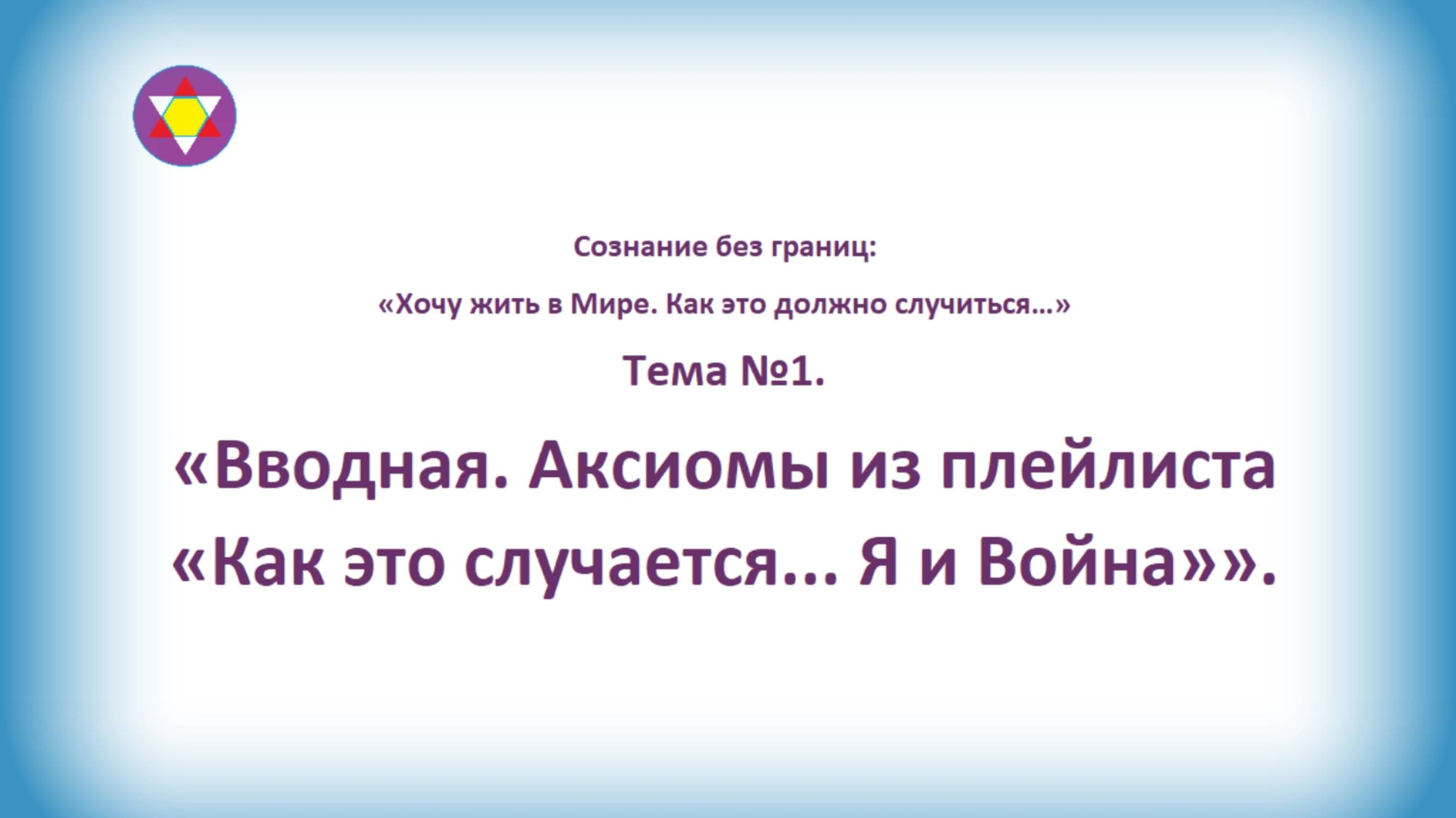 ТЕМА №1. "Вводная. Аксиомы из плейлиста "Как это случается... Я и Война"".