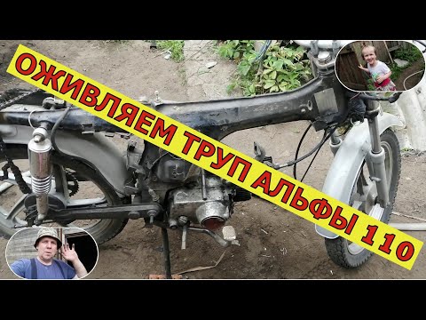 Оживляем труп АЛЬФЫ 110, собран из кучи хлама, провалялся год в сарае. Нет кикстартера , привариваю, подключаю проводку ставлю карбёр , и запуск.