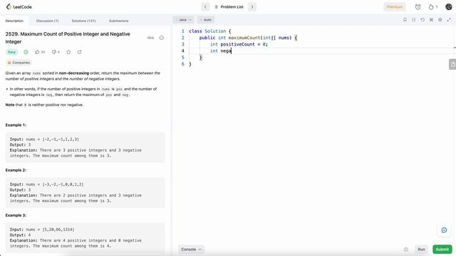 Leetcode 2529 Maximum Count of Positive Integer and Negative Integer (Java) - Leetcode Contest 327