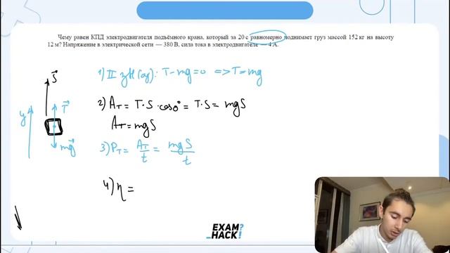 Чему равен КПД электродвигателя подъёмного крана, который за 20 с равномерно поднимает груз - №26251