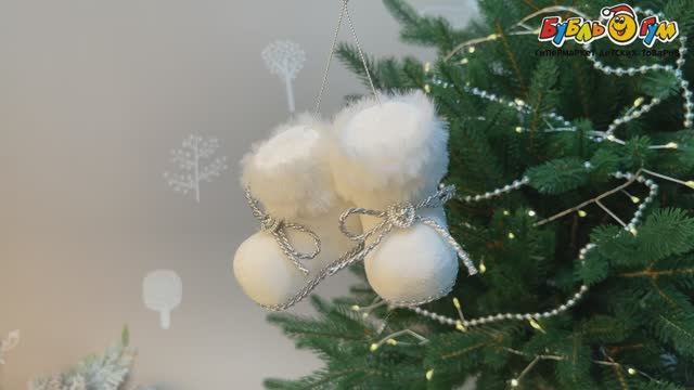 332447 Украшение елочное Башмачки с белой меховой опушкой и серебристым шнурком белые 12см