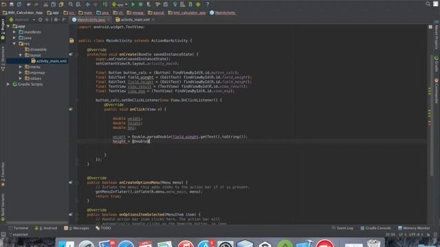 Easy Android App (BMI-Calculator) (Button, Edittext and Toasts)