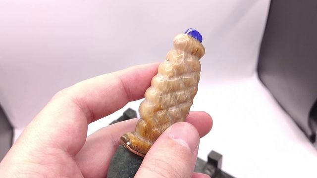 Нож из камня: Жадеит, Агальматолит, Лазурит. Клинок - Жадеит (Саяны) Рукоять - Агальматолит (Тыва) Камень на эфесе - Лазурит (Забайкалье) Подставка - Офит. 100% природные камни, без облагораживания. Вес ножа: 61 г Вес ножа с подставкой: 160 г Общая длина ножа: 15 см 3.4 см в самой широкой части Длина клинка: 8.5 см К590
