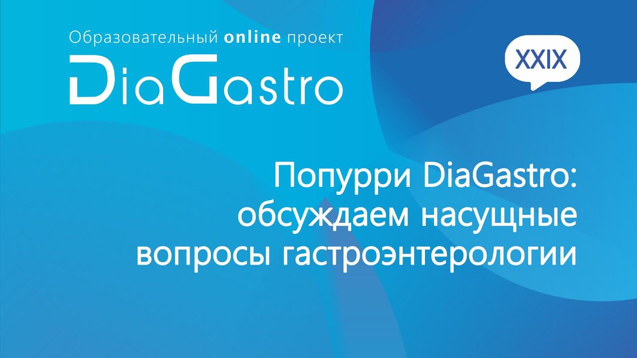 Образовательный онлайн-проект DiaGastro XXIX Попурри DiaGastro: обсуждаем насущные вопросы гастроэнтерологии Юрий Александрович Кучерявый, Олег Александрович Саблин, Мария Дмитриевна Ардатская, Марина Фёдоровна Осипенко