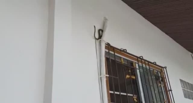 Змея пытается залезть в дом. Паттайя