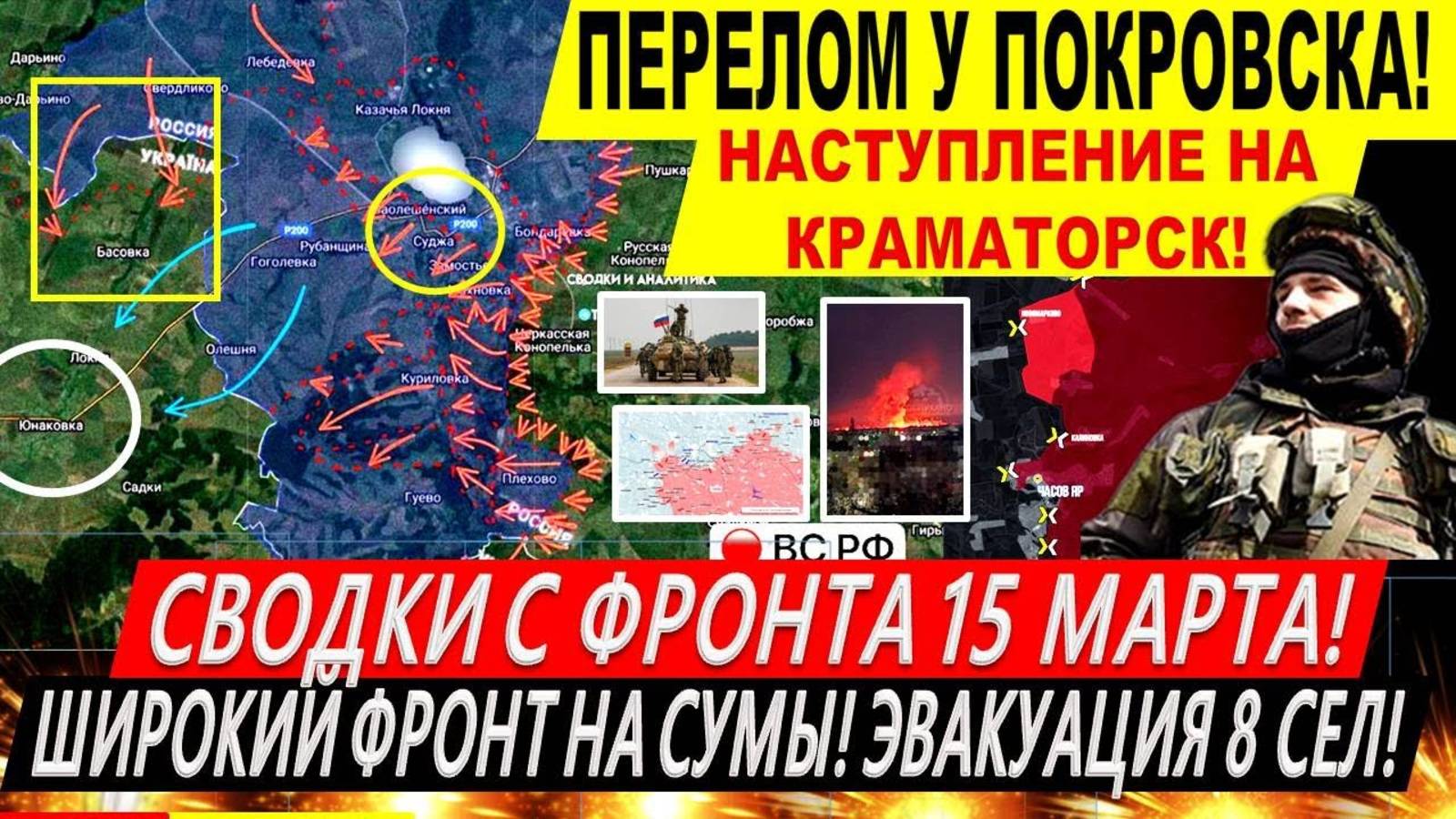 Сводки с фронта 15 марта: ВС РФ идут на Сумы! Курская область. Прорыв у Краматорска Покровска. Трамп