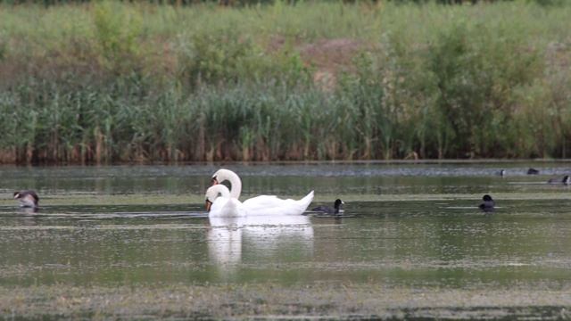 Семья лебедей на пруду